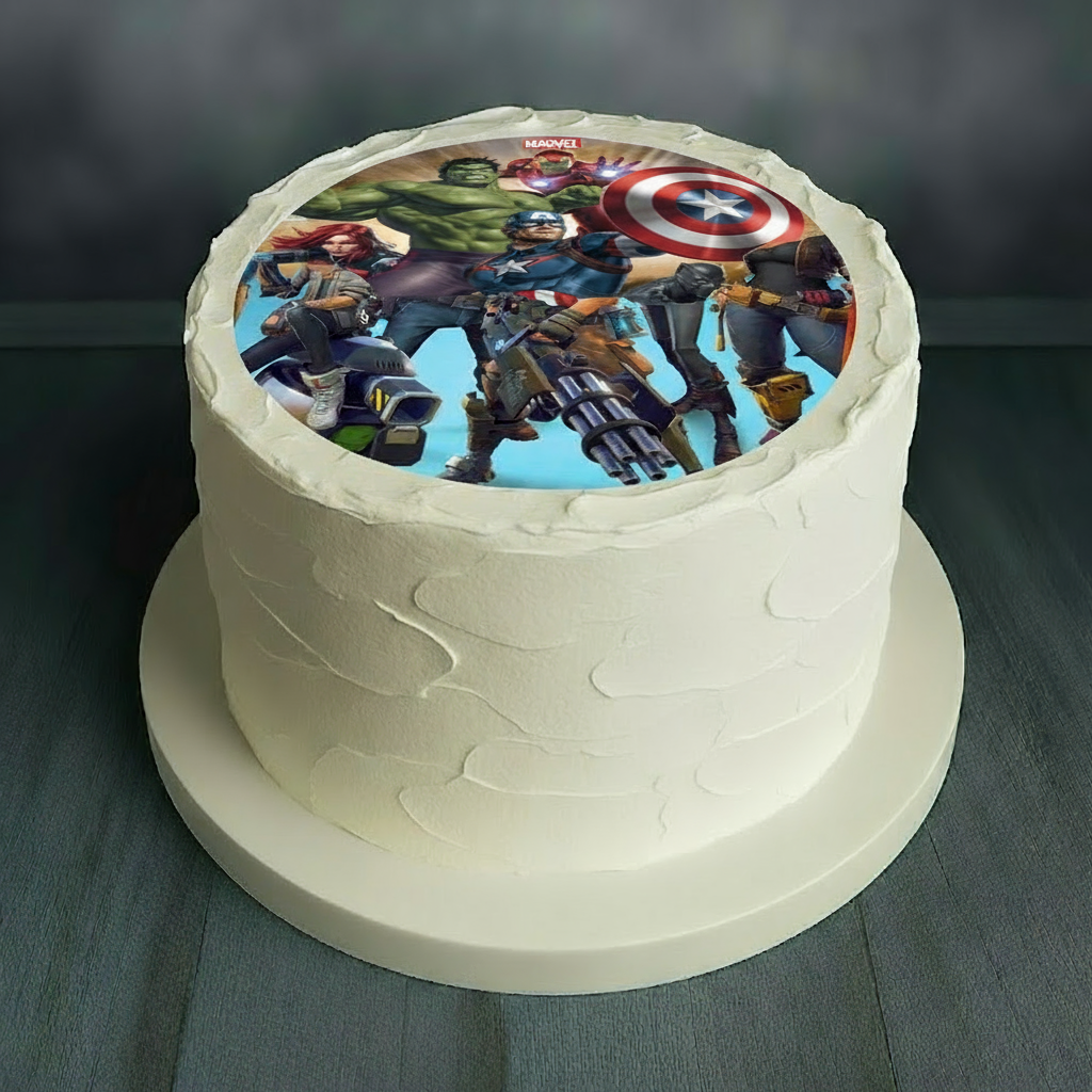 Tort Avengers Marvel to prawdziwa gratka dla fanów superbohaterów. Na opłatku jadalnym znajdują się Hulk, Kapitan Ameryka, Czarna Wdowa i inni bohaterowie. Ten tort urodzinowy Marvel zachwyci każde dziecko i dorosłego fana komiksów i filmów.